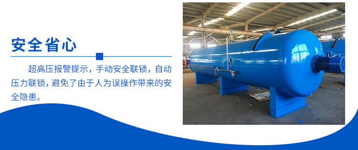 溫度、壓力、時間采用自動控制,性能穩定可靠,使用方便快捷,是一種傳統的硫化設備。設計壓力在0.6-3.0MPa,設計溫度150-220℃,設計直徑600-5000mm,設計長度1000-60000mm之間,根據產品技術要求單獨為客戶設計定做。